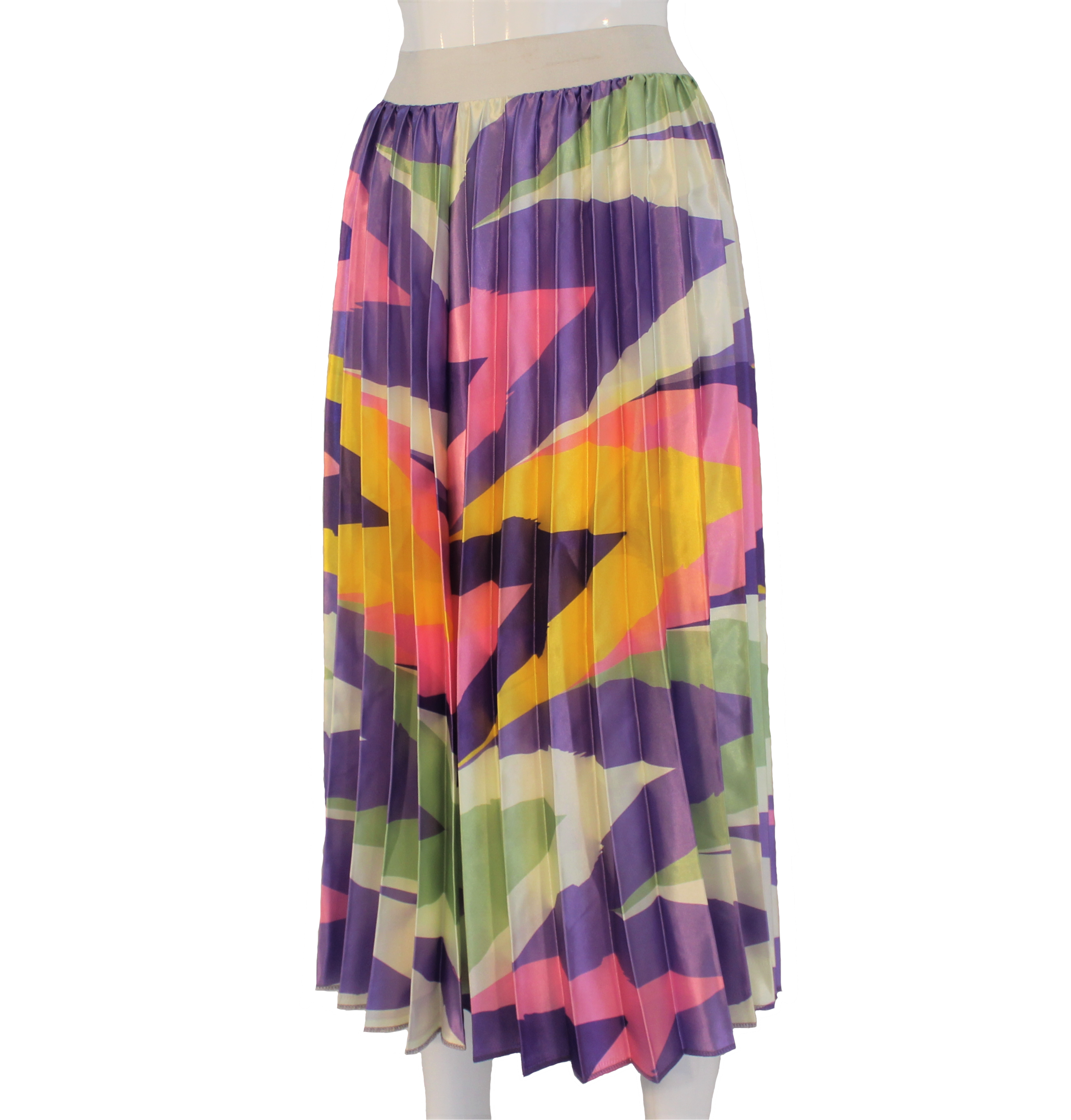 Accordion Satin Skirt With Elastic Waistband