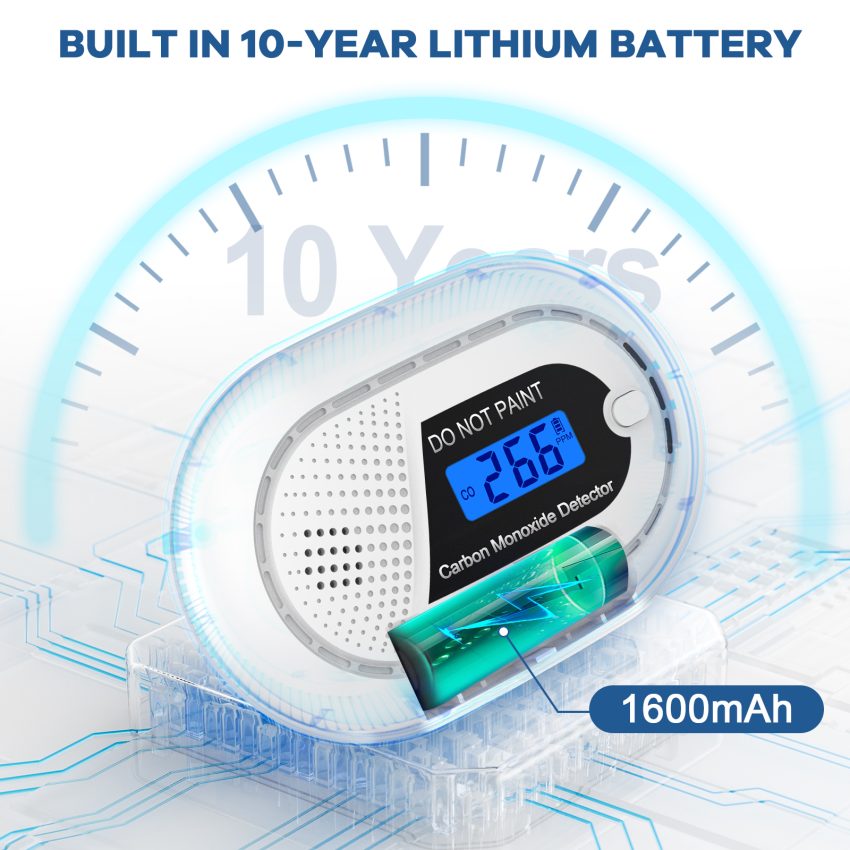 Black CO detector non-Wi-Fi 10 years battery LCD