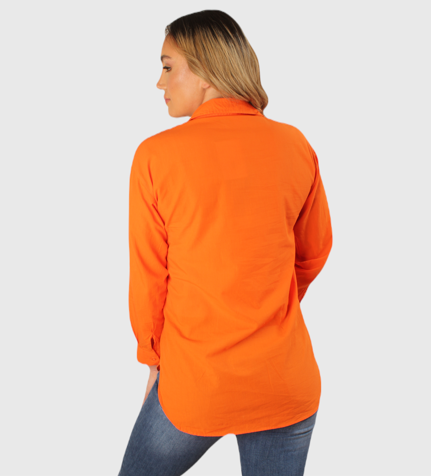 قميص بأزرار لأيام الصيف أنيق بقصة علوية ، وجيب حقيقي على الجانب الأيسر.
