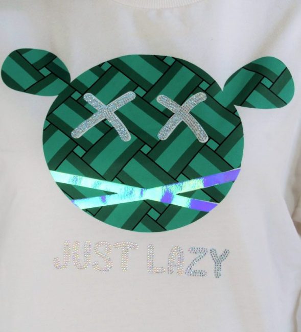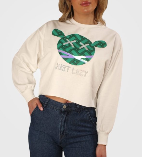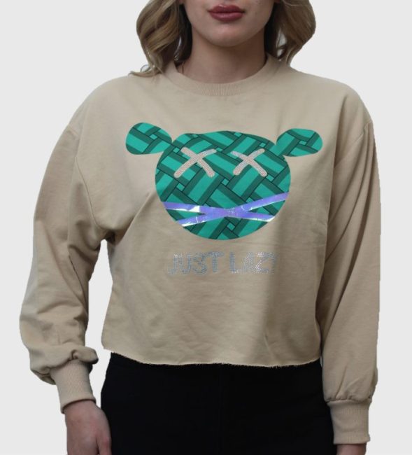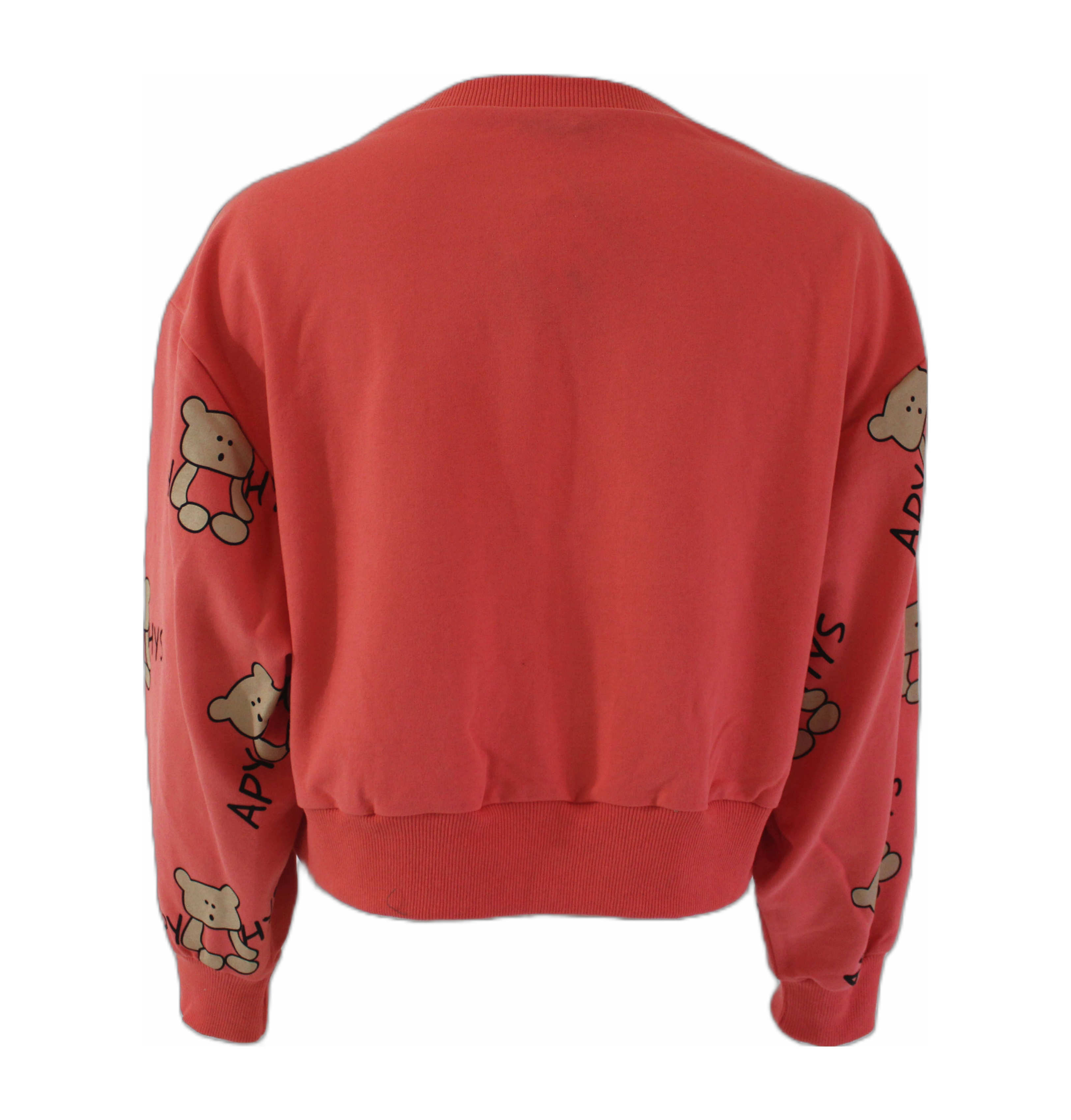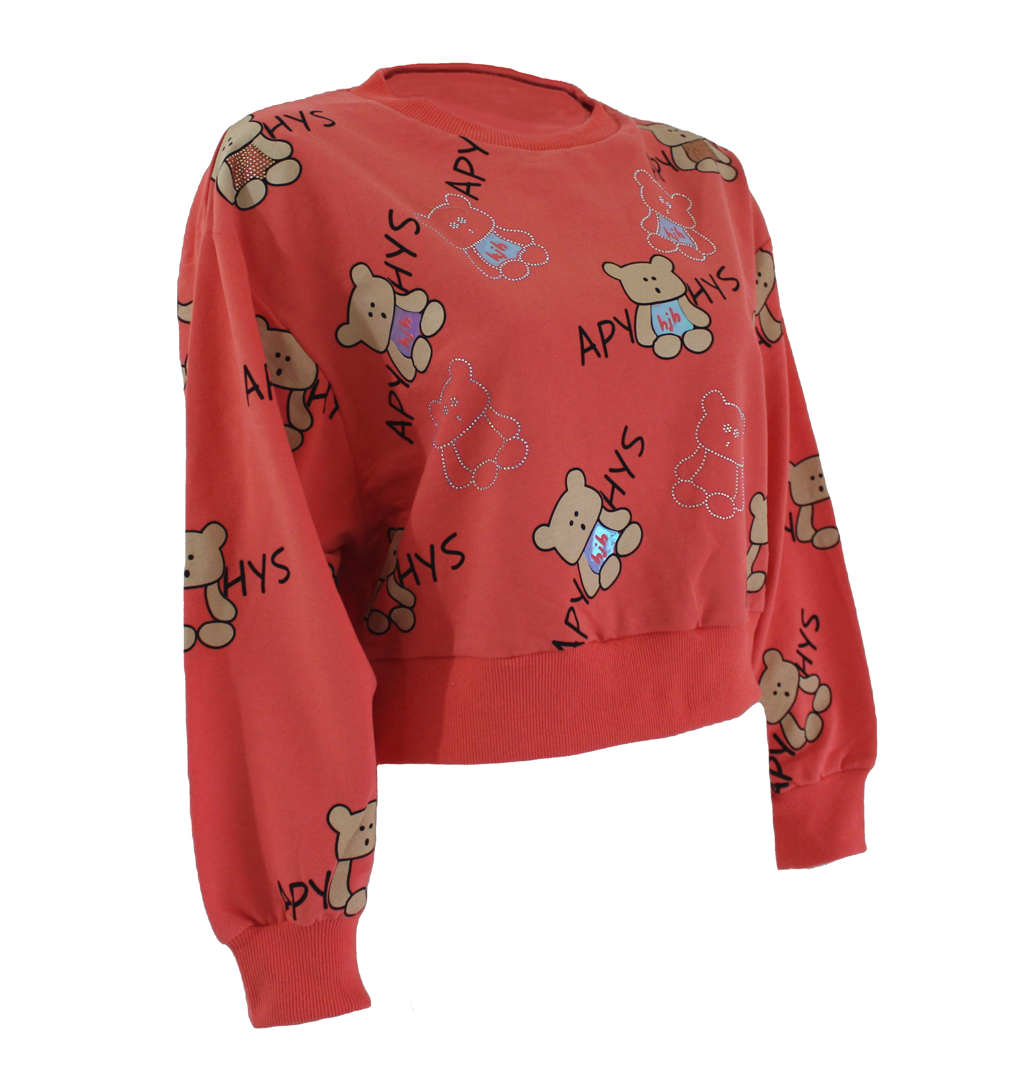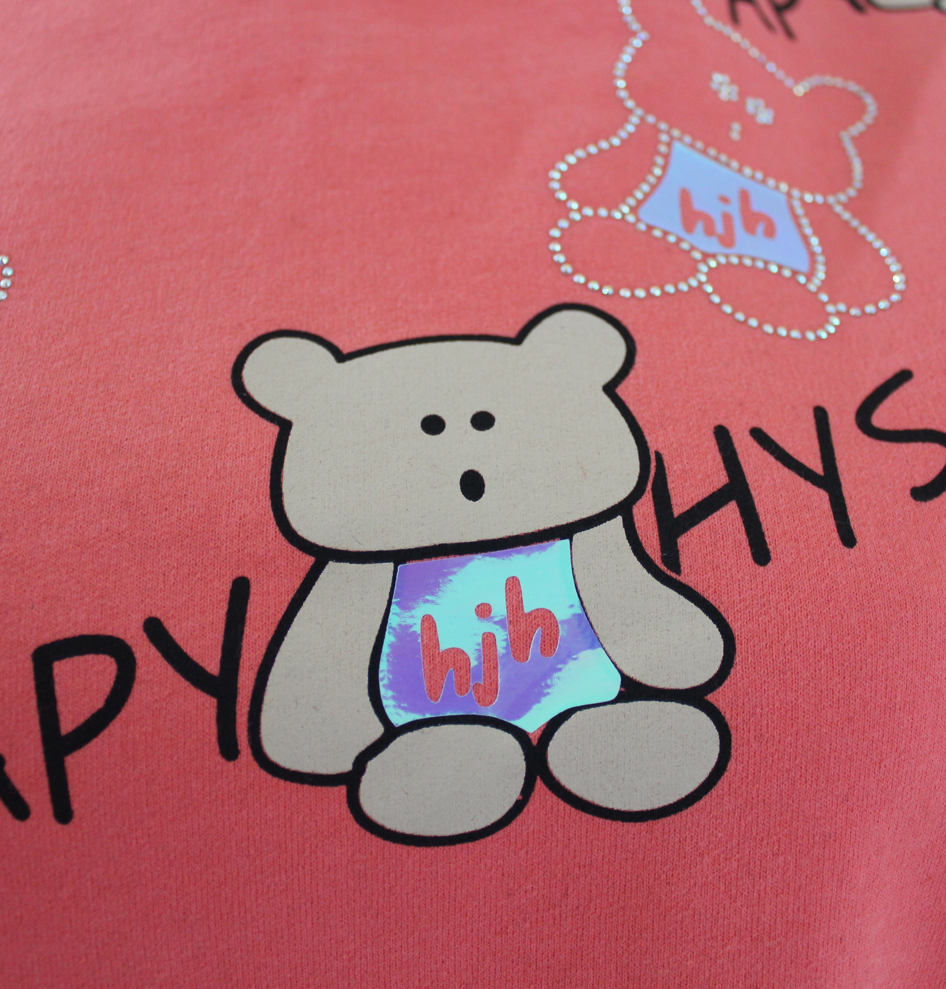 سترة طويلة الأكمام بياقة مستديرة مع رسومات دببة لطيفة (حسب اللون) وستراس قوس قزح.