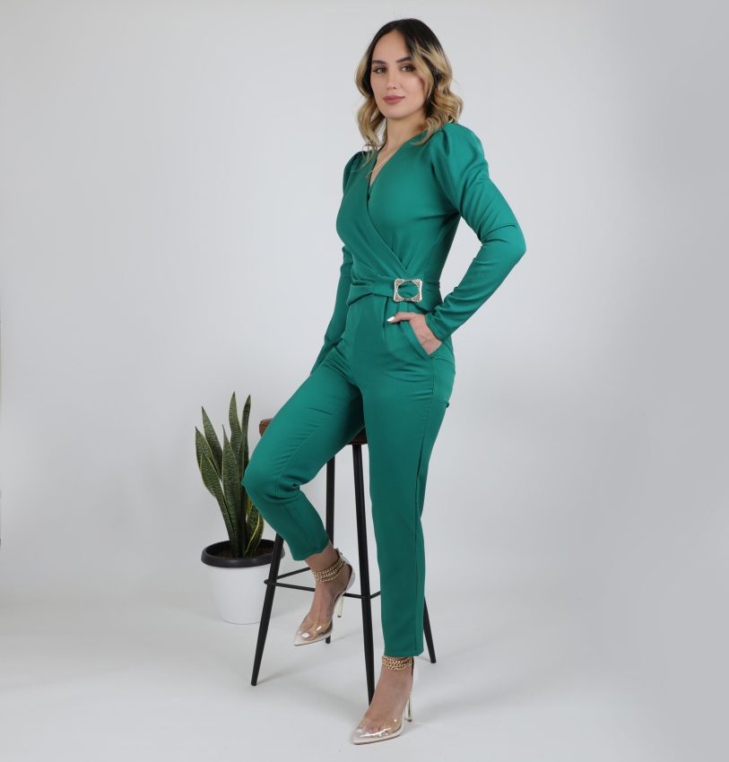 جمبسوت من الكريب الناعم مع سحاب غير مرئي من الخلف. متوفر بمقاس X – صغير