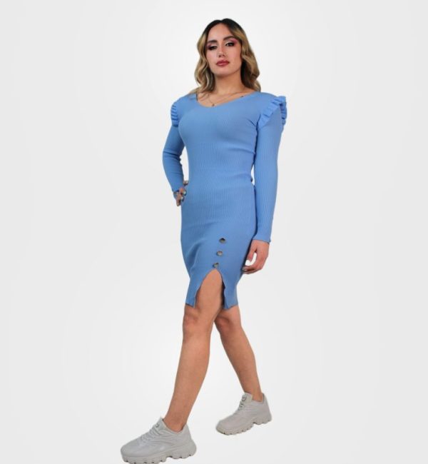 فستان بأكمام طويلة قابل للتمدد مع فتحة جانبية